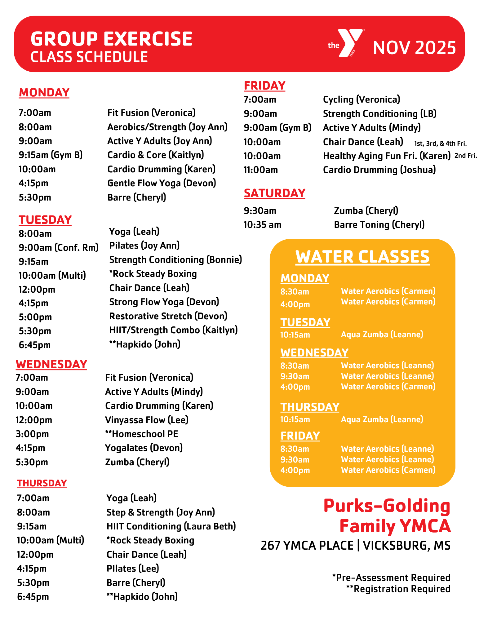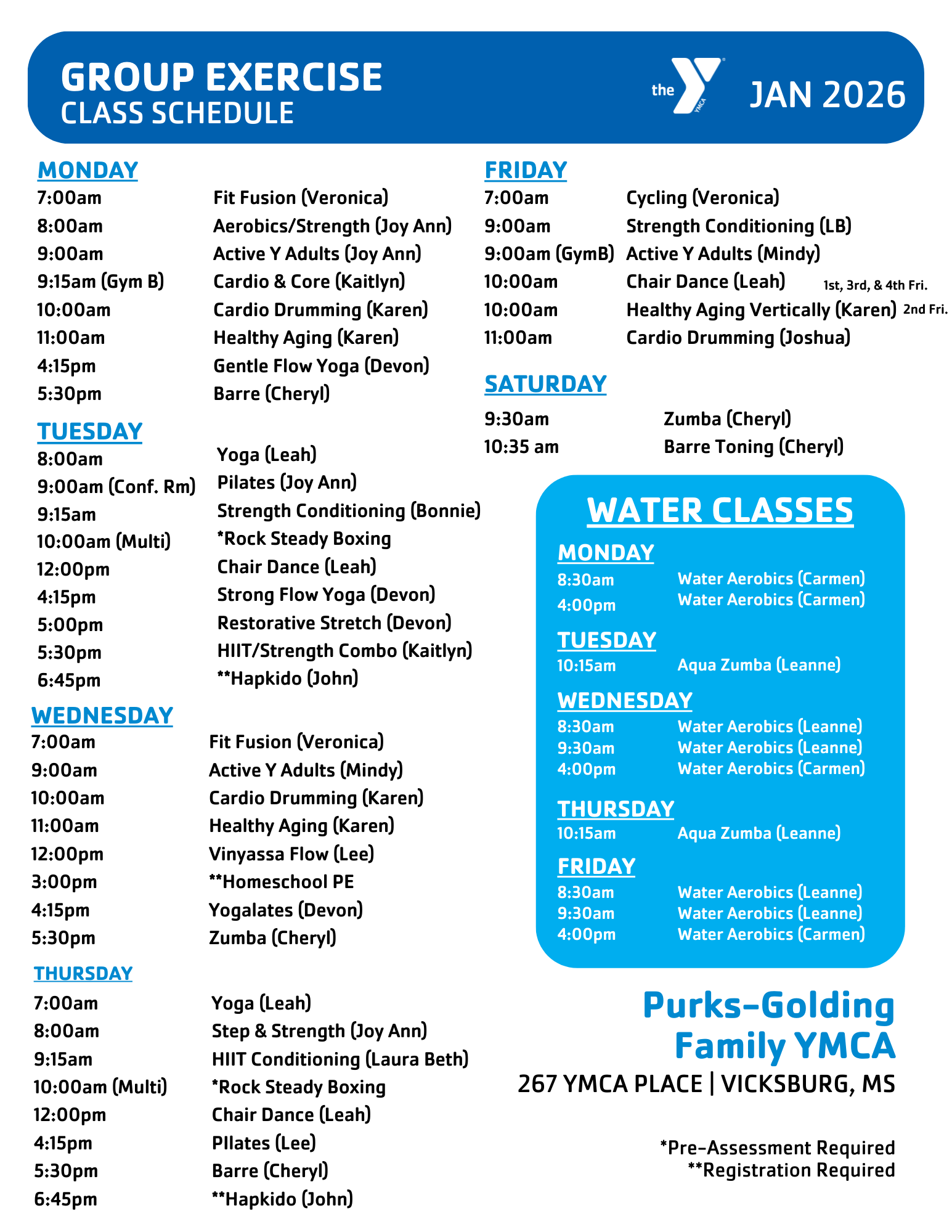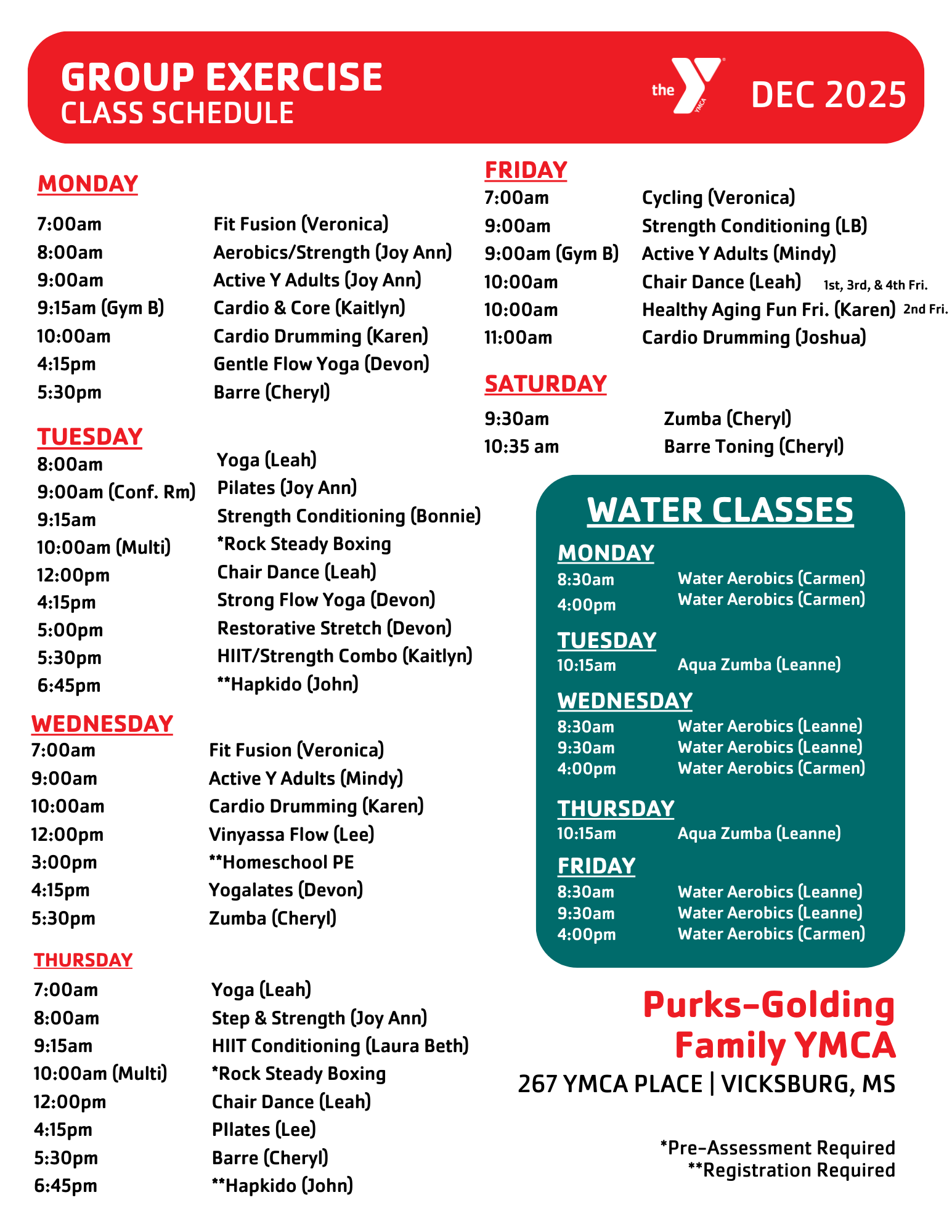 These programs are offered at your Vicksburg YMCA: